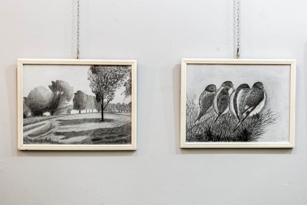 Ruža Hrnjak, majka Borisa Hrnjaka (47) čiji su radovi privukli pozornost, kaže da se Boris mjesecima pripremao za ovu izložbu, da je slikanje njegova terapija i da tamnije slike odražavaju lošija raspoloženja, dok koloritni radovi otkrivaju njegov vedri duh i kreativni zanos.